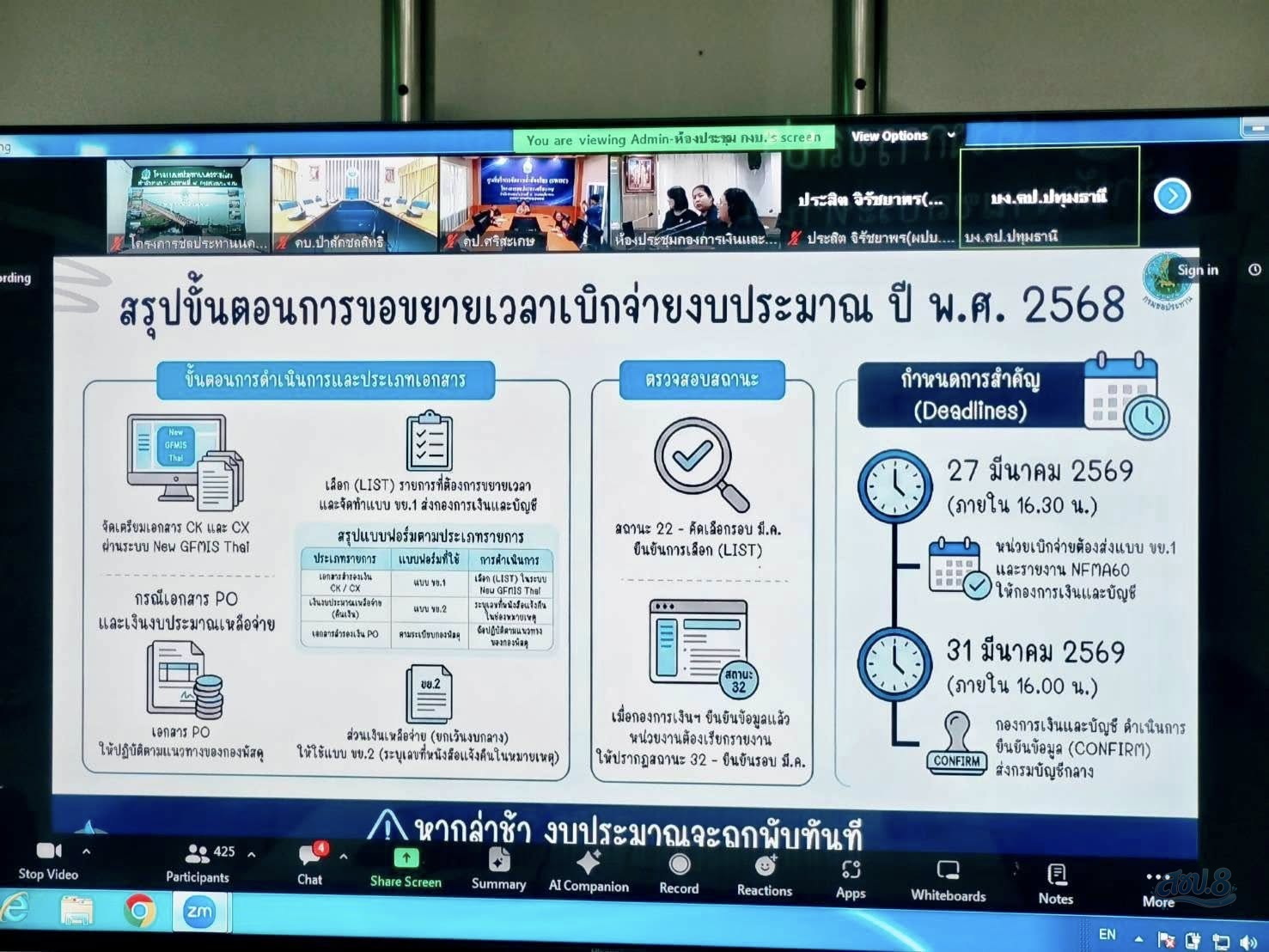 วันจันทร์ที่ 23 มีนาคม 2569 เวลา 09.30 น. นายสุคนธ์ เต็มยศยิ่ง ผู้อำนวยการโครงการชลประทานนครราชสีมา มอบหมายให้ นางสายพิณ พรโคกกรวด หัวหน้าหน่วยเบิกจ่าย และ นางสาวชุลีพร ชมโคกกรวด หัวหน้างานพัสดุ เข้าร่วมกิจกรรม FAD Talk Today เรื่องนี้ต้องบอกต่อ เรื่องแนวทางการขยายเวลาเบิกจ่ายงบประมาณ พ.ศ. 2568 ครั้งที่ 2/2569 ผ่านระบบออนไลน์ Zoom Meeting เพื่อให้การดำเนินงานเบิกจ่ายงบประมาณฯ ให้เป็นไปด้วยความเรียบร้อย ตามหลักเกณฑ์ วิธีการและภายในระยะเวลาที่กระทรวงการคลังกำหนด ณ ห้องประชุม 2 โครงการชลประทานนครราชสีมา ตำบลในเมือง อำเภอเมือง จังหวัดนครราชสีมา