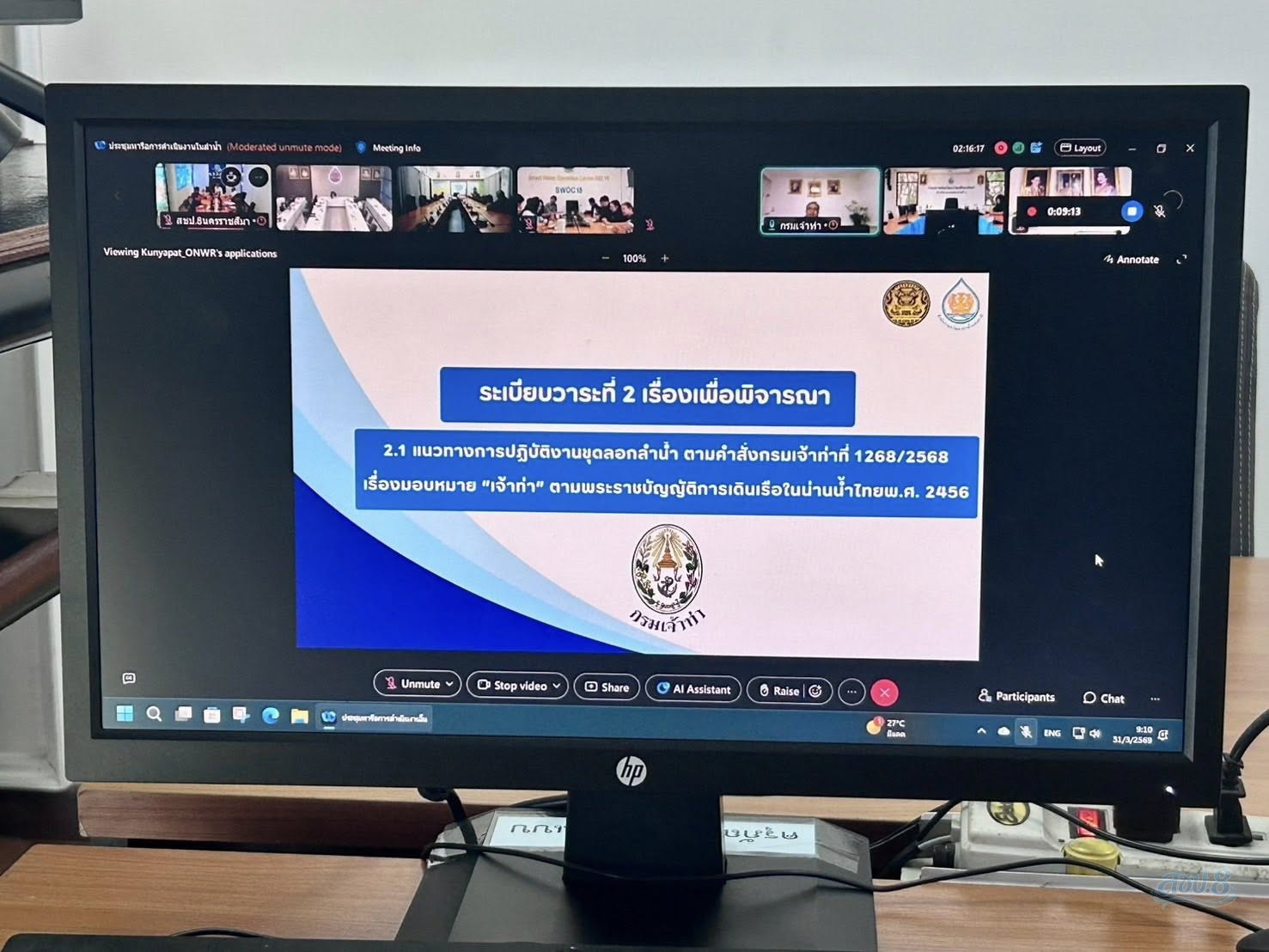 วันอังคารที่ 31 มีนาคม 2569 เวลา 09.00 น. นายกิตติธัช เทพหัสดิน ณ อยุธยา ผู้อำนวยการสำนักงานชลประทานที่ 8 มอบหมายให้ นายธีระศักดิ์ ประหยัด รองผู้อำนวยการสำนักงานชลประทานที่ 8 พร้อมด้วย นายคงฤทธิ์ สุภักดี ผู้อำนวยการส่วนบริหารจัดการน้ำและบำรุงรักษา และหัวหน้าฝ่ายที่เกี่ยวข้อง เข้าร่วมประชุมการบูรณาการงานขุดลอกและการกำจัดผักตบชวาในลำน้ำ ผ่านสื่ออิเล็กทรอนิกส์ (Cisco WebEx Meetings) ทั้งนี้มีวาระการประชุมเพื่อพิจารณาแนวทางการปฏิบัติงานขุดลอกลำน้ำ ตามคำสั่งกรมเจ้าท่าฯ การมอบหมายหน่วยงานและการแบ่งขอบเขตงานในการขุดลอกลำน้ำสายหลัก 22 ลุ่มน้ำ แนวทางการดำเนินงานและการแบ่งขอบเขตงานในการกำจัดผักตบชวาในลำน้ำ เพื่อให้หน่วยงานที่มีภารกิจในการบริหารจัดการลำน้ำและทางน้ำโดยตรง สามารถดำเนินงานขุดลอกลำน้ำในพื้นที่รับผิดชอบเป็นไปอย่างมีประสิทธิภาพ ไม่ซ้ำซ้อน และเกิดการบูรณาการระหว่างหน่วยงานอย่างเป็นระบบ ณ ห้อง SWOC 8 ชั้น 2 สำนักงานชลประทานที่ 8 ตำบลในเมือง อำเภอเมือง จังหวัดนครราชสีมา