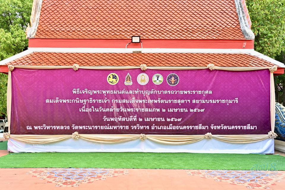 วันพฤหัสบดีที่ 2 เมษายน 2569 เวลา 06.30 น. นายกิตติธัช เทพหัสดิน ณ อยุธยา ผู้อำนวยการสำนักงานชลประทานที่ 8 มอบหมายให้ นางสาวณัฐสินี ทรวงโพธิ์ หัวหน้าฝ่ายประชาสัมพันธ์และสารสนเทศ พร้อมด้วย นางสาวญาณิศา คล้องช้าง และ นางสาวกิติยา เอี่ยมจิตต์ ข้าราชการและเจ้าหน้าที่สำนักงานชลประทานที่ 8 เข้าร่วมพิธีทำบุญตักบาตรถวายพระราชกุศล และพิธีถวายพระพรชัยมงคล สมเด็จพระกนิษฐาธิราชเจ้า กรมสมเด็จพระเทพรัตนราชสุดาฯ สยามบรมราชกุมารี เนื่องในโอกาสวันคล้ายวันพระราชสมภพ 2 เมษายน 2569 โดยมี นายอนุพงศ์ สุขสมนิตย์ ผู้ว่าราชการจังหวัดนครราชสีมา เป็นประธานในพิธีฯ ร่วมด้วย หัวหน้าส่วนราชการ รัฐวิสาหกิจ องค์กรเอกชน และประชาชนชาวจังหวัดนครราชสีมา เข้าร่วมพิธีฯ ณ พระวิหารหลวง วัดพระนารายณ์มหาราช วรวิหาร ตำบลในเมือง อำเภอเมือง จังหวัดนครราชสีมา