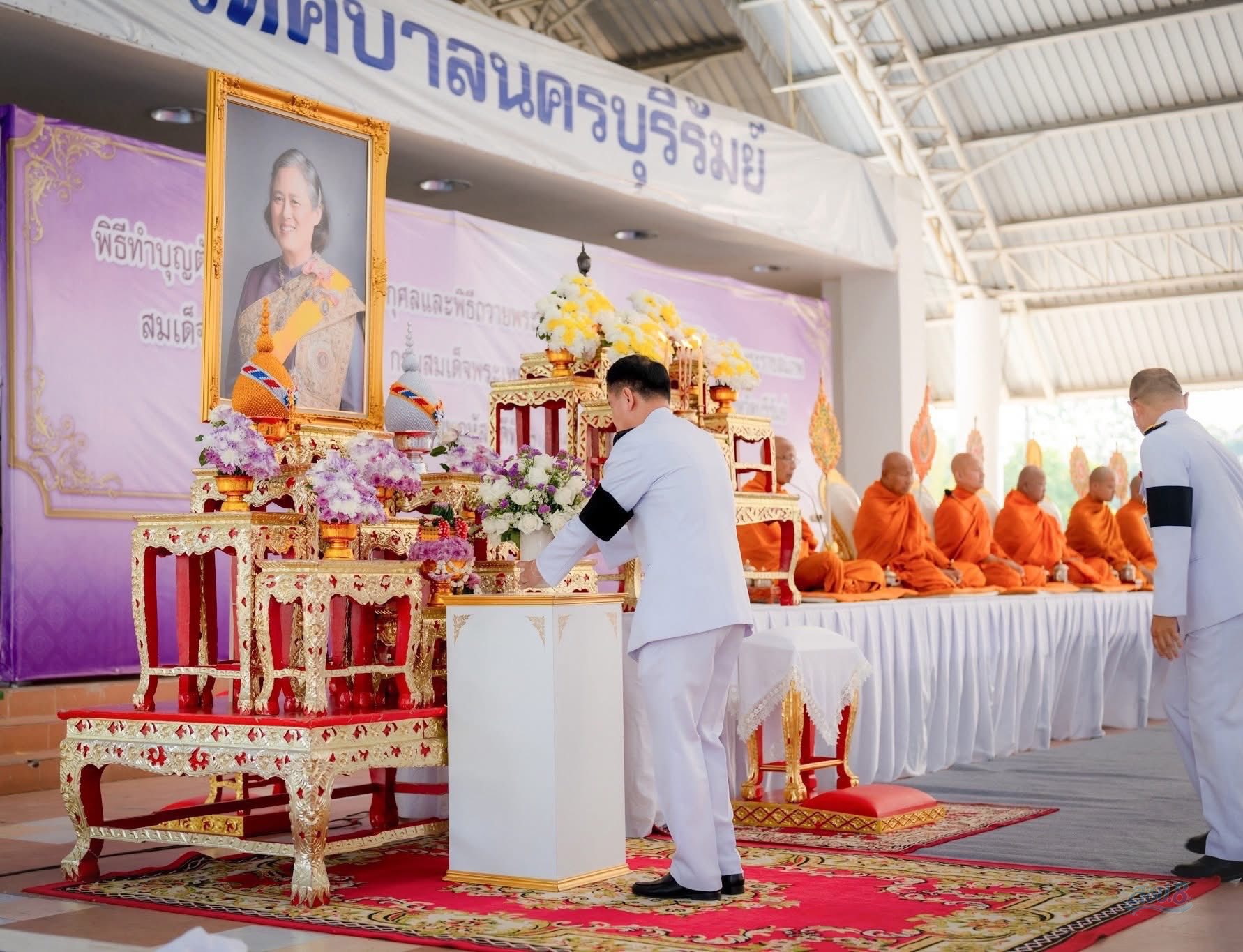 วันพฤหัสบดีที่ 2 เมษายน 2569 เวลา 07.00 น. นายราเมศ พวงพรหม ผู้อำนวยการโครงการชลประทานบุรีรัมย์ มอบหมายให้ นางสาวณัฐฐินันท์ กองสะอาด นายช่างชลประทานปฏิบัติงาน เข้าร่วมพิธีทำบุญตักบาตรถวายพระราชกุศลและพิธีถวายพระพรชัยมงคล เนื่องในโอกาสวันคล้ายวันพระราชสมภพสมเด็จพระกนิษฐาธิราชเจ้า กรมสมเด็จพระเทพรัตนสุดาฯ สยามบรมราชกุมารี จังหวัดบุรีรัมย์ โดยมี นายปิยะ ปิจนำ ผู้ว่าราชการจังหวัดบุรีรัมย์ เป็นประธานประกอบพิธีเจริญพระพุทธมนต์ จุดธูปเทียนบูชาพระรัตนตรัย ถวายธูปเทียนแพ เปิดกรวยกระทงดอกไม้สด ต่อหน้าพระฉายาลักษณ์ ฯ ร่วมด้วย เภสัชหญิงณัฐรดา ปิจนำ นายกเหล่ากาชาดจังหวัดบุรีรัมย์ หัวหน้าส่วนราชการ ทหาร ตำรวจ อัยการ ศาล ข้าราชการและหน่วยงานที่เกี่ยวข้องเข้าร่วมพิธีฯ และร่วมทำบุญตักบาตร พระสงฆ์และสามเณรรับบิณฑบาต ณ โดมสวนรมย์บุรี 200 ปี เทศบาลนครบุรีรัมย์ อำเภอเมืองบุรีรัมย์ จังหวัดบุรีรัมย์