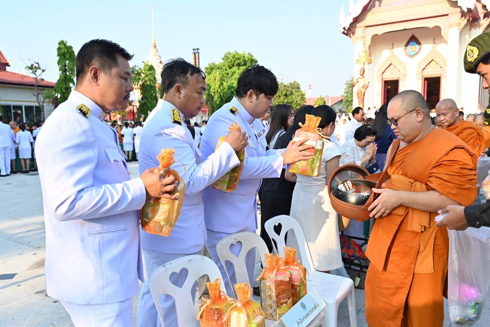 วันจันทร์ที่ 6 เมษายน 2569 เวลา 06.30 น. นายกิตติธัช เทพหัสดิน ณ อยุธยา ผู้อำนวยการสำนักงานชลประทานที่ 8 มอบหมายให้ นายกิตติเชษฐ์ ชินโพธิ์กลาง หัวหน้าฝ่ายสำรวจภูมิประเทศ พร้อมด้วย นายณัฐเดช จรุงจิตอภินันท์ และ นายวีระพงษ์ ชยุติมา ข้าราชการสำนักงานชลประทานที่ 8 เข้าร่วมพิธีสวดพระพุทธมนต์ ตักบาตรพระสงฆ์ เนื่องในวันที่ระลึก “พระบาทสมเด็จพระพุทธยอดฟ้าจุฬาโลกมหาราชและวันที่ระลึกมหาจักรีบรมราชวงศ์” ประจำปี 2569 เพื่อแสดงความจงรักภักดีและน้อมรำลึกถึงพระมหากรุณาธิคุณของพระมหากษัตริย์บรมราชจักรีวงศ์ โดยมี นายอนุพงศ์ สุขสมนิตย์ ผู้ว่าราชการจังหวัดนครราชสีมา เป็นประธานในพิธีฯ ร่วมด้วย ผู้แทนจากหน่วยงานภาครัฐ รัฐวิสาหกิจ ภาคเอกชน และประชาชน เข้าร่วมพิธีฯ ณ พระอุโบสถ วัดสุทธจินดาวรวิหาร จากนั้นเข้าร่วมพิธีวางพานพุ่มดอกไม้ ถวายราชสักการะ ร่วมกับหน่วยงานในสังกัดกระทรวงเกษตรและสหกรณ์ ณ หอประชุมเปรมติณสูลานนท์ ศาลากลางจังหวัดนครราชสีมา