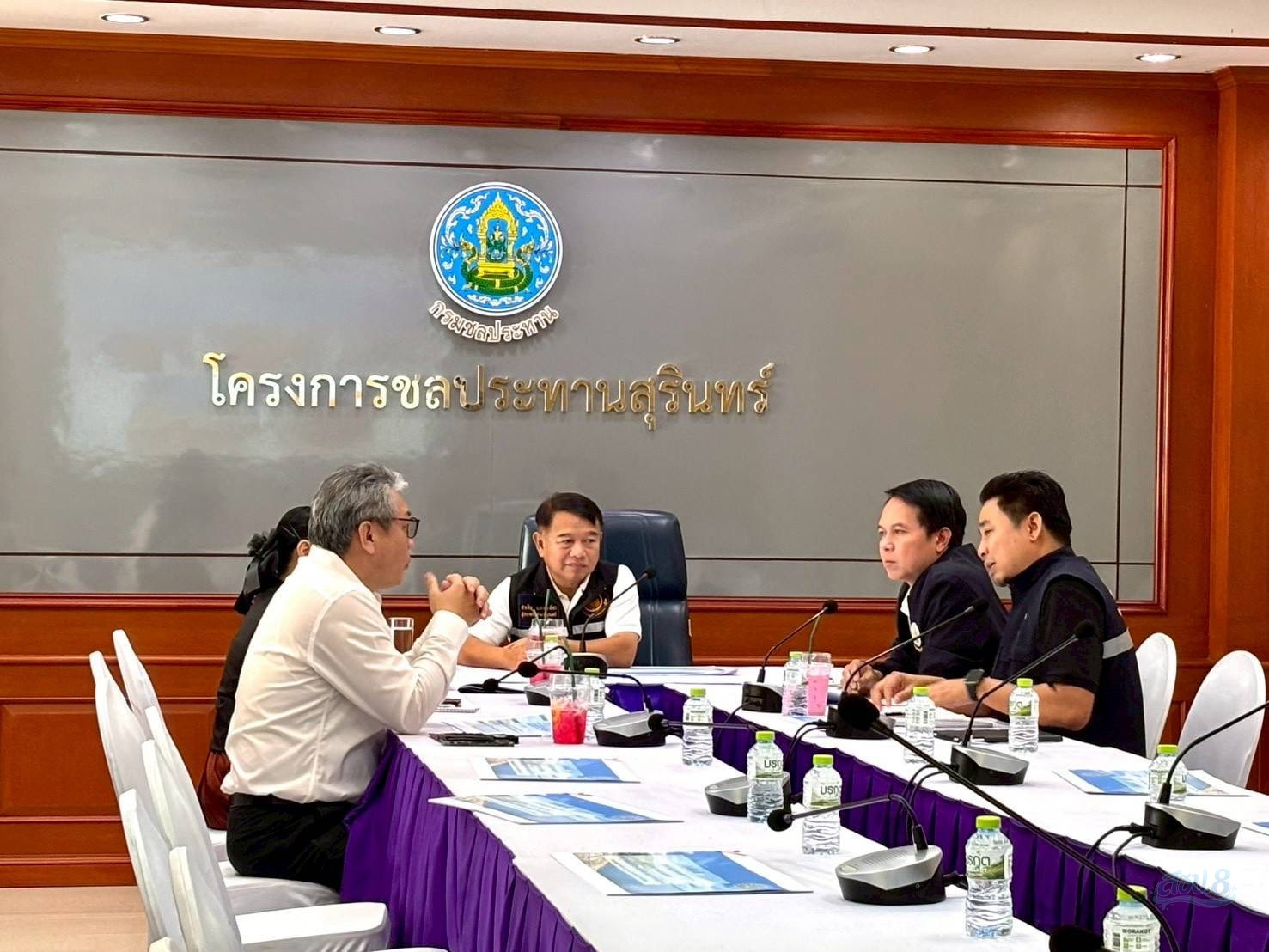 วันพุธที่ 8 เมษายน 2569 เวลา 11.00 น. นายธนบดี รักสัตย์ ผู้อำนวยการโครงการชลประทานสุรินทร์ มอบหมายให้ นายพลากร หวังกลุ่มกลาง หัวหน้าฝ่ายวิศวกรรม พร้อมด้วย นายภูมิสิทธิ์ สุทธิทัศนาวิทย์ หัวหน้าฝ่ายจัดสรรน้ำและปรับปรุงระบบชลประทาน และ นายณัฐพงศ์ วงษ์ฉลาด หัวหน้าฝ่ายส่งน้ำและบำรุงรักษาที่ 1 ร่วมให้การต้อนรับ นายจำเริญ แหวนเพ็ชร ผู้ว่าราชการจังหวัดสุรินทร์ และคณะ ในการลงพื้นที่ติดตามผลดำเนินงานขุดลอกอ่างเก็บน้ำอำปึล และ สถานีสูบน้ำด้วยไฟฟ้าพร้อมระบบส่งน้ำบ้านใต้ฆ้อง บ้านใต้ฆ้อง หมู่ที่ 12 ตำบลตาอ็อง อำเภอเมือง จังหวัดสุรินทร์