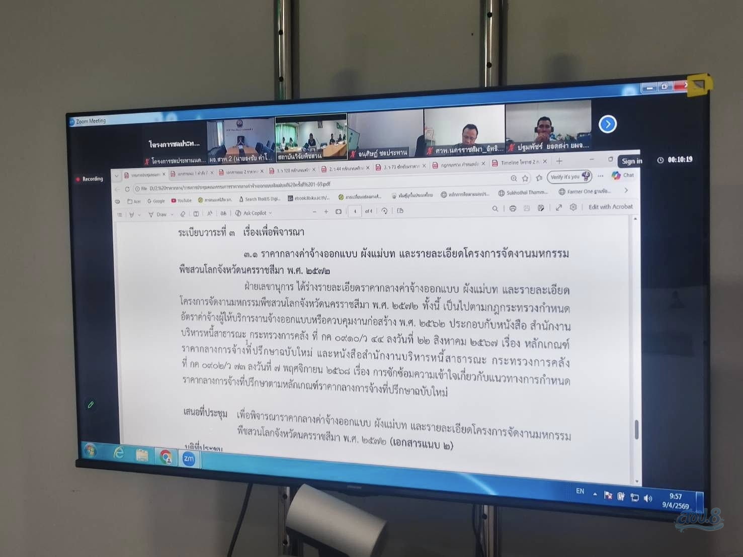 วันพฤหัสบดีที่ 9 เมษายน 256 เวลา 09.30 น. นายสุคนธ์ เต็มยศยิ่ง ผู้อำนวยการโครงการชลประทานนครราชสีมา พร้อมด้วย นายอนุศิษฏ์ วางขุนทด หัวหน้าฝ่ายส่งน้ำและบำรุงรักษาที่ 5 เข้าร่วมประชุมคณะกรรมการราคากลางจ้างออกแบบ ผังแม่บท และรายละเอียดโครงการจัดงานมหกรรมพืชสวนโลกจังหวัดนครราชสีมา พ.ศ. 2572 ณ พื้นที่สาธารณประโยชน์โคกหนองรังกา ตำบลเทพาลัย อำเภอคง จังหวัดนครราชสีมา ครั้งที่ 1/2569 ผ่านระบบออนไลน์ Zoom Meeting เพื่อให้การดำเนินงานเป็นไปด้วยความเรียบร้อย ณ ห้องประชุม 2 โครงการชลประทานนครราชสีมา ตำบลในเมือง อำเภอเมือง จังหวัดนครราชสีมา