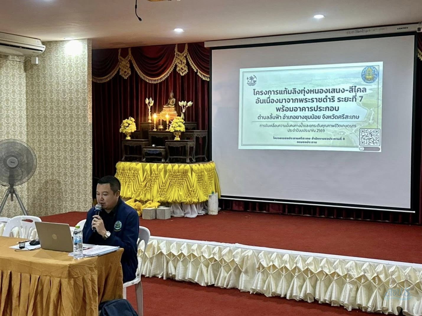 วันอังคารที่ 21 เมษายน 2569 นายจำรัส สวนจันทร์ ผู้อำนวยการโครงการชลประทานศรีสะเกษ มอบหมายให้ นายกรฤต มีเกิดมูล หัวหน้าฝ่ายส่งน้ำและบำรุงรักษาที่ 1 จัดประชุมประชาคมชี้แจงรายละเอียดการดำเนินการให้ราษฎรในพื้นที่โครงการแก้มลิง ทุ่งหนองเสนง–สีไคล อันเนื่องมาจากพระราชดำริ ระยะที่ 7 แผนงานโครงการประจำปีงบประมาณ 2569 โดยมี หน่วยงานที่เกี่ยวข้อง ผู้นำท้องถิ่น และราษฎรในพื้นที่ เข้าร่วมประชุม ซึ่งการจัดประชุมในครั้งนี้มีวัตถุประสงค์เพื่อชี้แจงรายละเอียดของโครงการ แนวทางการดำเนินงาน ประโยชน์ที่จะได้รับ ตลอดจนรับฟังความคิดเห็น ข้อเสนอแนะจากประชาชนในพื้นที่ เพื่อให้การดำเนินโครงการเป็นไปอย่างมีประสิทธิภาพ และสอดคล้องกับความต้องการของชุมชน ณ ที่ทำการองค์การบริหารส่วนตำบลลิ้นฟ้า อำเภอยางชุมน้อย จังหวัดศรีสะเกษ