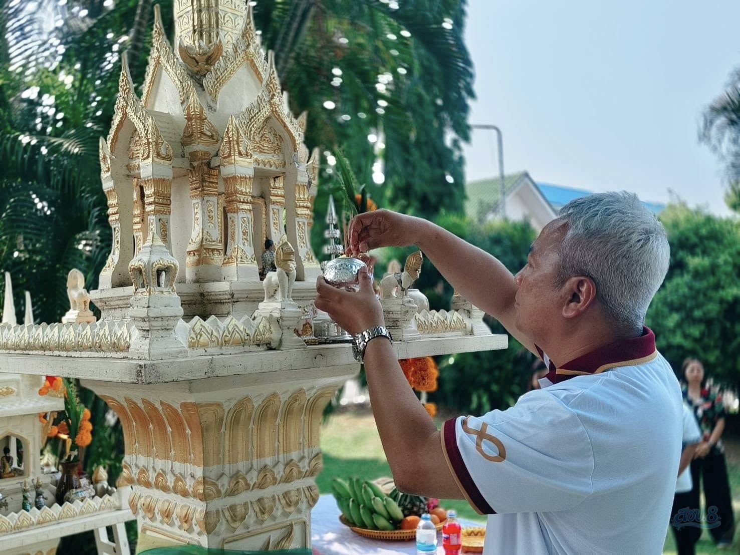 วันพฤหัสบดีที่ 23 เมษายน 2569 เวลา 09.09 น. นายสุคนธ์ เต็มยศยิ่ง ผู้อำนวยการโครงการชลประทานนครราชสีมา นำหัวหน้าฝ่าย หัวหน้างาน และเจ้าหน้าที่ในสังกัด ร่วมประกอบพิธีไหว้สักการะศาลพระภูมิ หม่อมหลวงชูชาติ กำภู และสิ่งศักดิ์สิทธิ์ประจำโครงการ เพื่อความเป็นสิริมงคล เนื่องในเทศกาลสงกรานต์ ร่วมสืบสานประเพณีไทย ประจำปี 2569 ณ โครงการชลประทานนครราชสีมา ตำบลในเมือง อำเภอเมือง จังหวัดนครราชสีมา