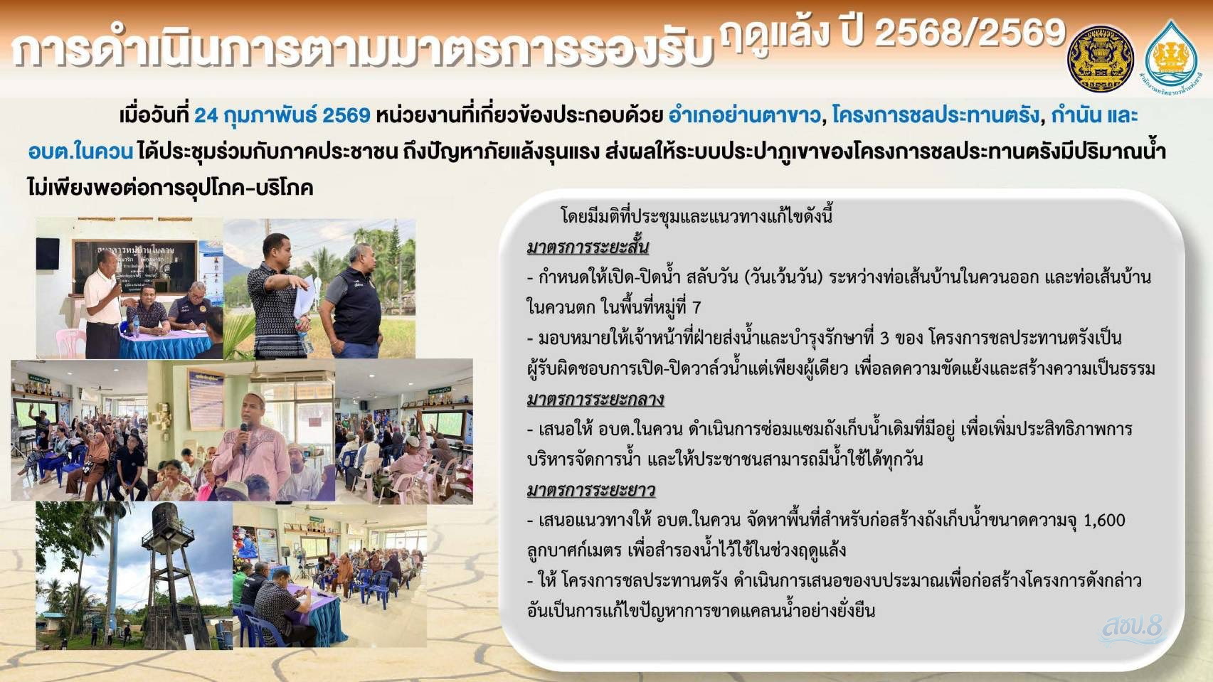 วันพฤหัสบดีที่ 23 เมษายน 2569 เวลา 13.30 น. นายสุคนธ์ เต็มยศยิ่ง ผู้อำนวยการโครงการชลประทานนครราชสีมา มอบหมายให้ นายอัฐ โรจนกุล นายช่างชลประทานปฏิบัติงาน และ นายธนภัทร อยู่สูงเนิน พนักงานธุรการ ส 3 ฝ่ายจัดสรรน้ำและปรับปรุงระบบชลประทาน เข้าร่วมประชุมรายงานผลการดำเนินงานตามมาตรการรองรับฤดูแล้ง ปี 2568/2569 ผ่านระบบออนไลน์ Zoom Meeting โดยมี นายไพฑูรย์ เก่งการช่าง รองเลขาธิการสำนักงานทรัพยากรน้ำแห่งชาติ เป็นประธานในการประชุม เพื่อให้การดำเนินงานต่างๆ เป็นไปด้วยความเรียบร้อย ณ โครงการชลประทานนครราชสีมา ตำบลในเมือง อำเภอเมือง จังหวัดนครราชสีมา