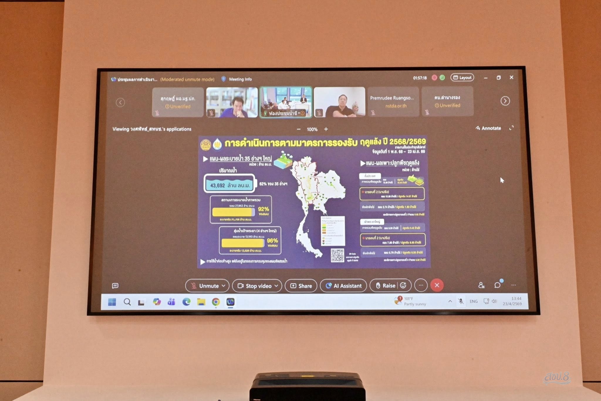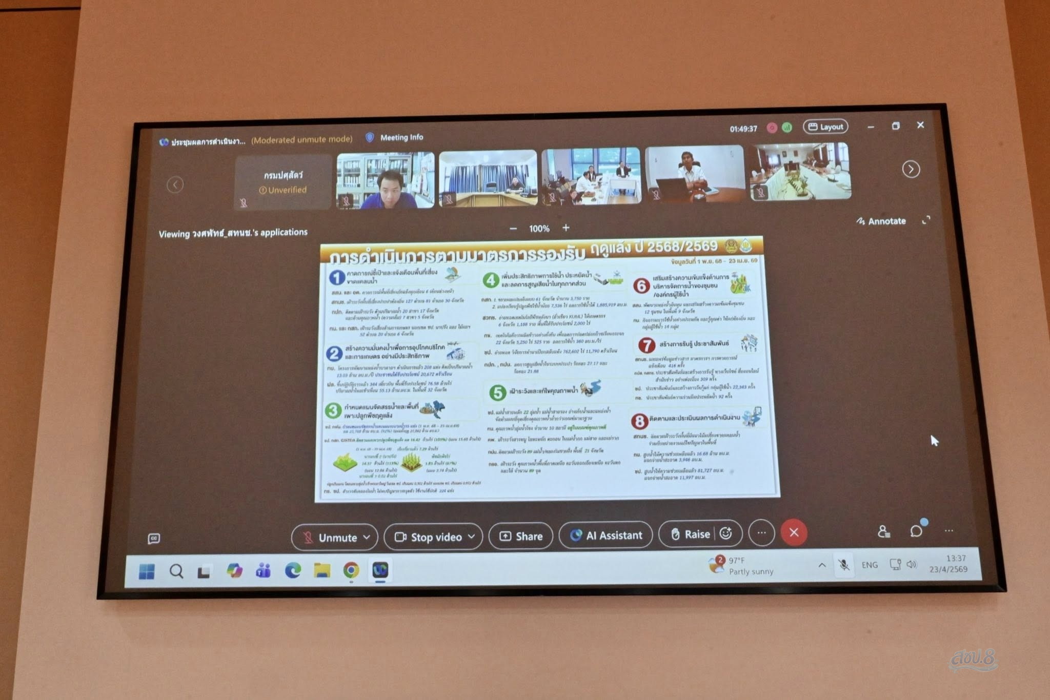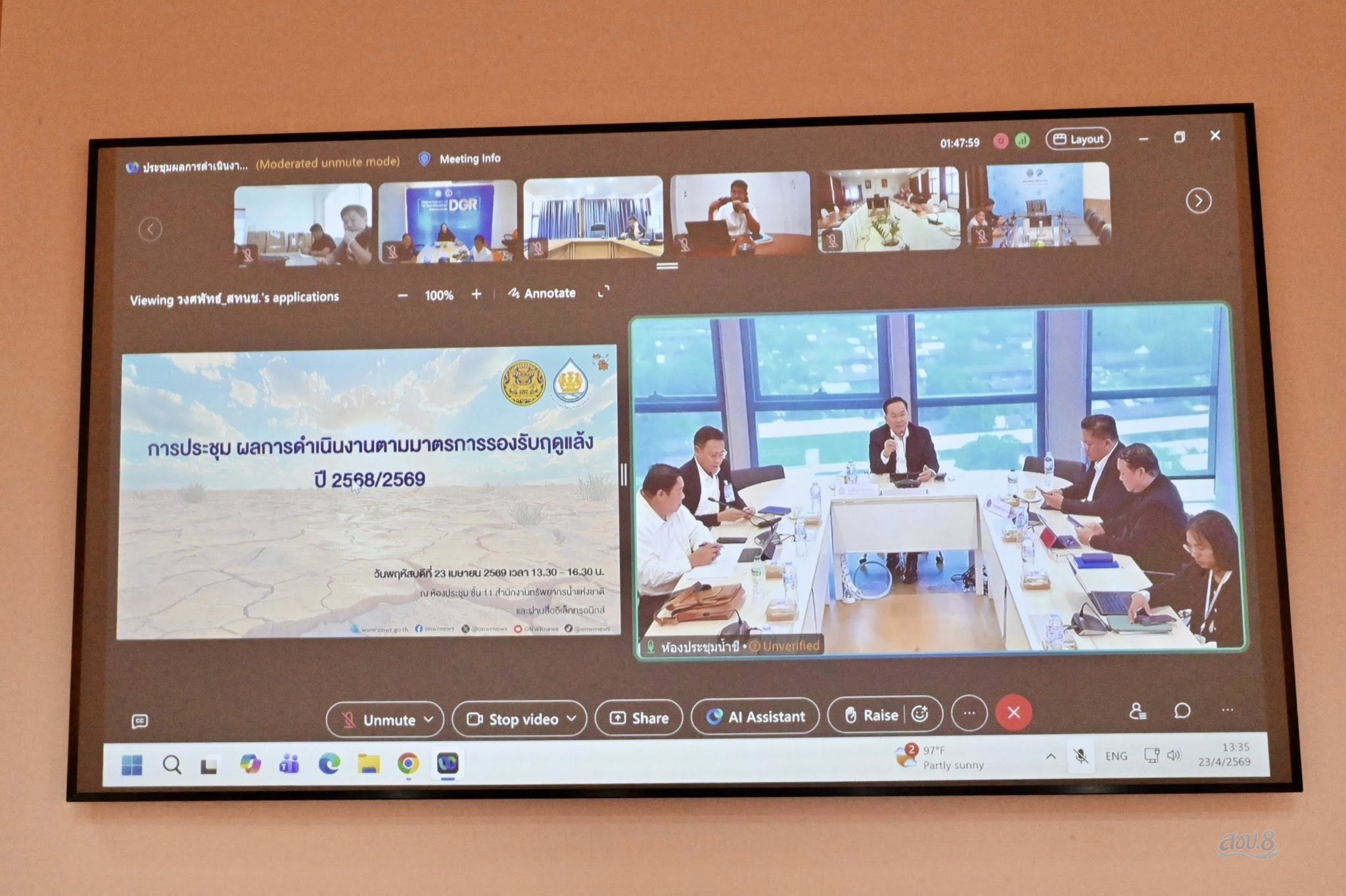 วันพฤหัสบดีที่ 23 เมษายน 2569 เวลา 13.30 น. นายกิตติธัช เทพหัสดิน ณ อยุธยา ผู้อำนวยการสำนักงานชลประทานที่ 8 มอบหมายให้ นายธีระศักดิ์ ประหยัด รองผู้อำนวยการสำนักงานชลประทานที่ 8 พร้อมด้วย นายธีรนันต์ เจริญศิริมณี หัวหน้าฝ่ายบริหารจัดการน้ำ และเจ้าหน้าที่ที่เกี่ยวข้อง เข้าร่วมประชุมรายงานผลการดำเนินงานตามมาตรการรองรับฤดูแล้ง ปี 2568/2569 ผ่านสื่ออิเล็กทรอนิกส์ โดยมี นายไพฑูรย์ เก่งการช่าง รองเลขาธิการสำนักงานทรัพยากรน้ำแห่งชาติ เป็นประธานในการประชุมฯ เพื่อให้การดำเนินการและการรายงานผลตามมาตรการฯ มีประสิทธิภาพต่อไป ณ ห้อง SWOC 8 ชั้น 4 สำนักงานชลประทานที่ 8 ตำบลในเมือง อำเภอเมือง จังหวัดนครราชสีมา