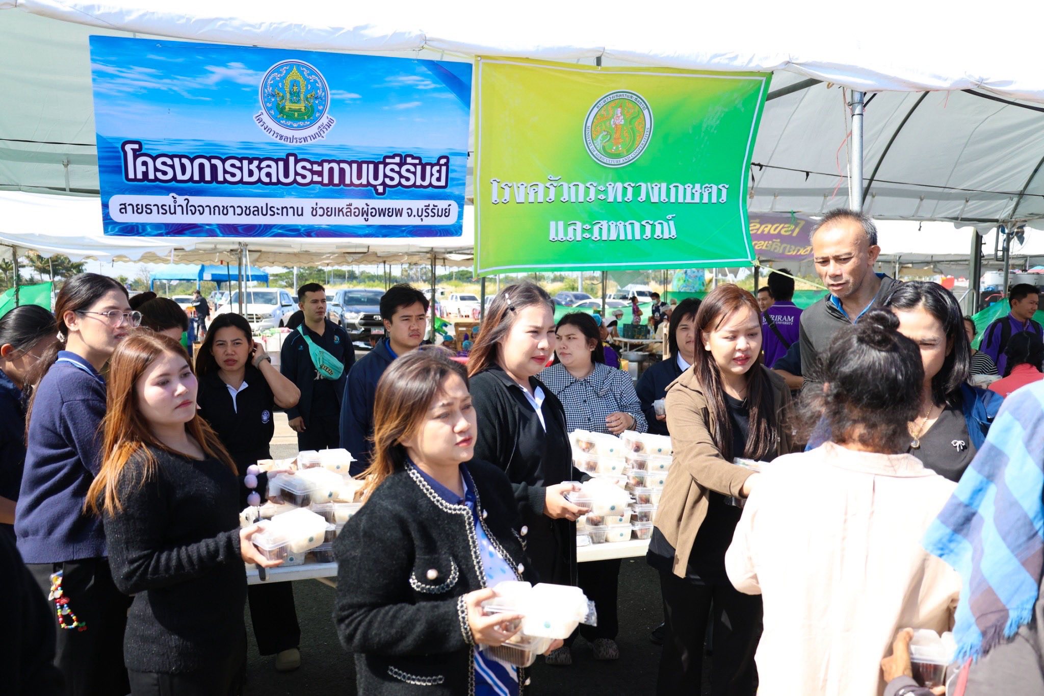 วันพฤหัสบดีที่ 18 ธันวาคม 2568 เวลา 11.00 น. นายราเมศ พวงพรหม ผู้อำนวยการโครงการชลประทานบุรีรัมย์ พร้อมด้วย นายพรสถิต ทองศรี หัวหน้าฝ่ายช่างกล นางสาวแก้วใจ พะนิจรัมย์ หัวหน้าฝ่ายบริหารทั่วไป นายดุสิต นาพินิจ หัวหน้าฝ่ายส่งน้ำและบำรุงรักษาที่ 6 และเจ้าหน้าที่โครงการฯ จัดกิจกรรมสายธารน้ำใจจากชาวชลประทาน จัดทำข้าวกล่องและมอบของใช้จำเป็น เพื่อสนับสนุน และสร้างขวัญกำลังใจให้ประชาชนผู้อพยพ ในเขตพื้นที่จังหวัดบุรีรัมย์