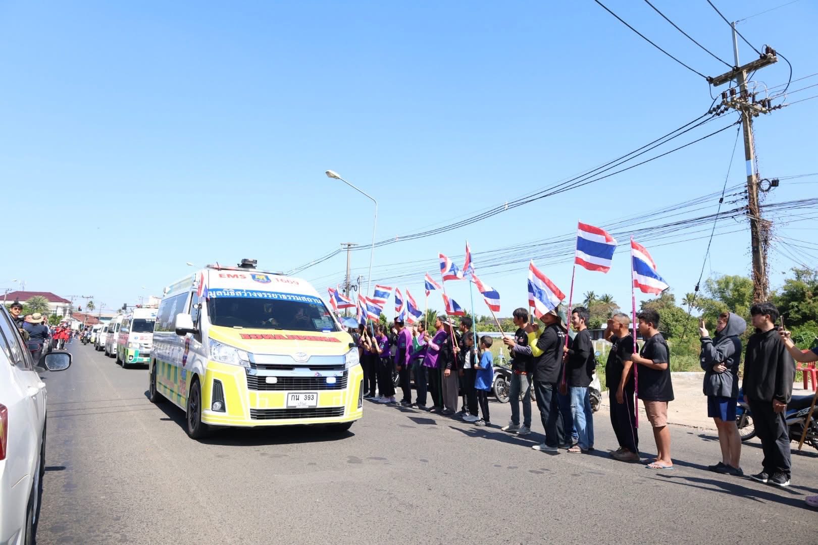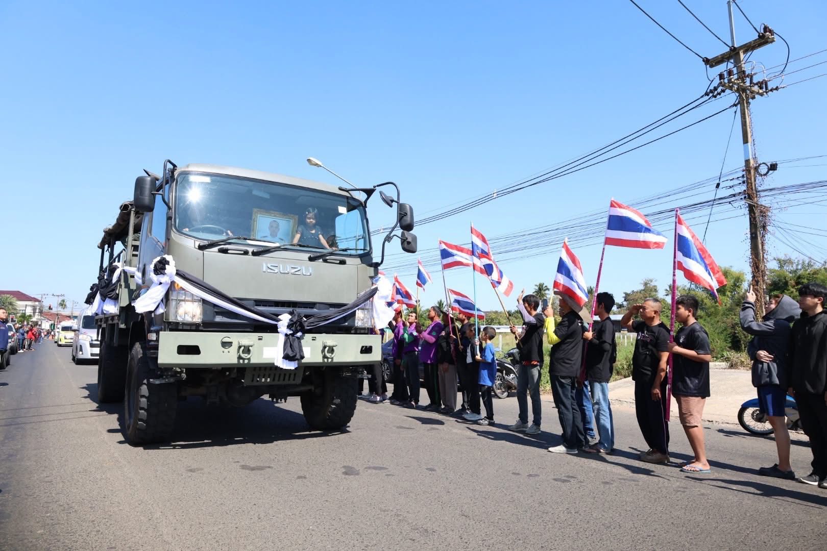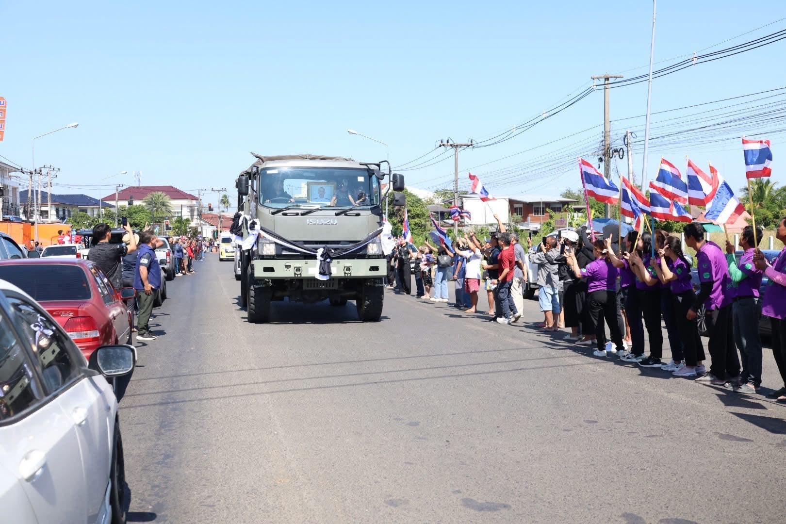 วันอาทิตย์ที่ 21 ธันวาคม 2568 เวลา 11.30 น. นายราเมศ พวงพรหม ผู้อำนวยการโครงการชลประทานบุรีรัมย์ มอบหมายให้ นางสาวแก้วใจ พะนิจรัมย์ หัวหน้าฝ่ายบริหารทั่วไป และเจ้าหน้าที่โครงการฯ ร่วมแสดงความอาลัย และสดุดีความกล้าหาญของ จ.ส.อ.สำเริง คลังประโคน วีรบุรุษทหารกล้า ที่ยอมสละชีพเพื่อชาติปกป้องอธิปไตยของชาติไทย ณ เนิน 350 โดยร่วมกันโบกสะบัดธงไตรรงค์ ธงชาติไทย ตลอดแนวขบวนเกียรติยศเคลื่อนร่าง เพื่อสดุดีวีรกรรม และส่งดวงวิญญาณวีรบุรุษกลับบ้านอย่างสมเกียรติ