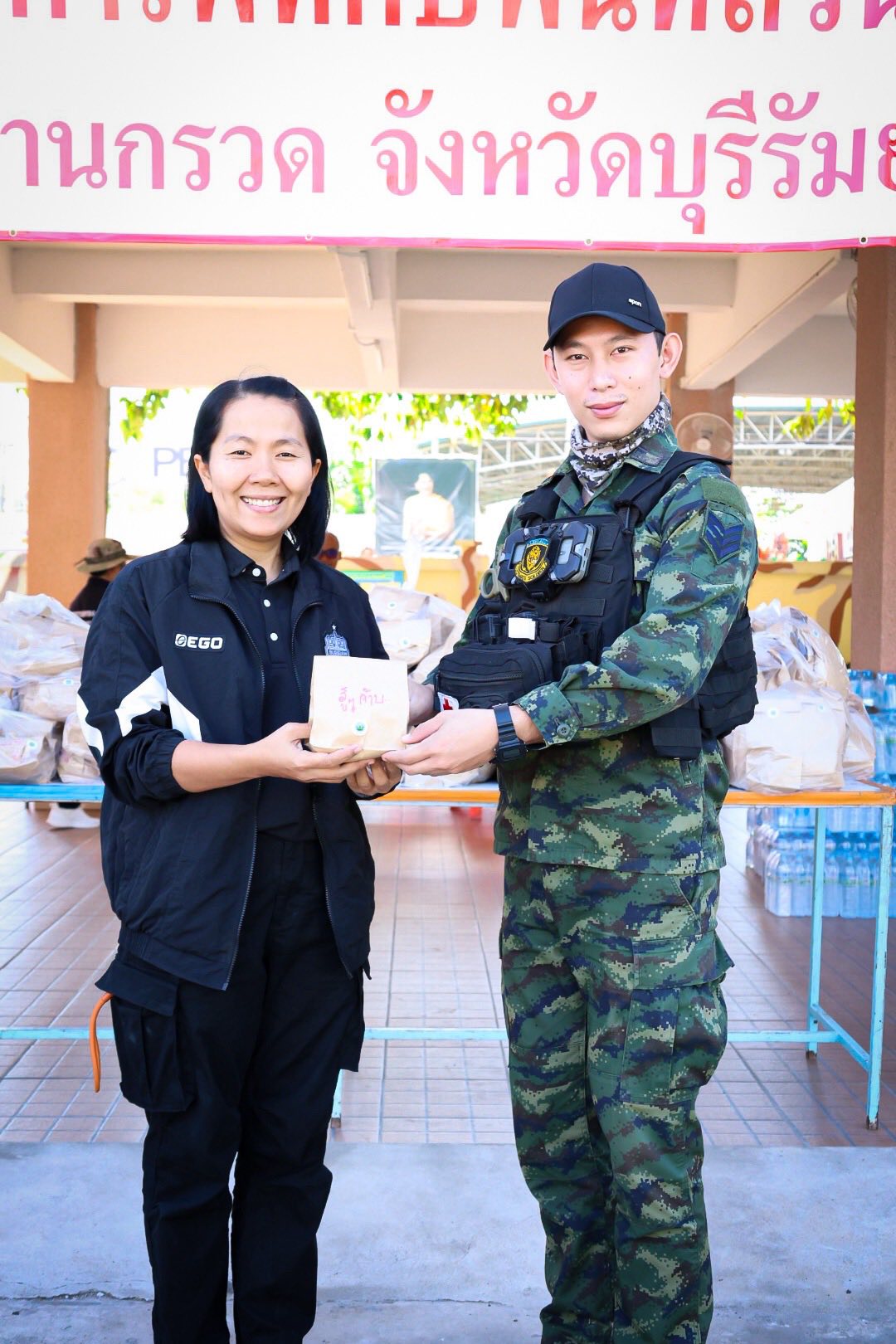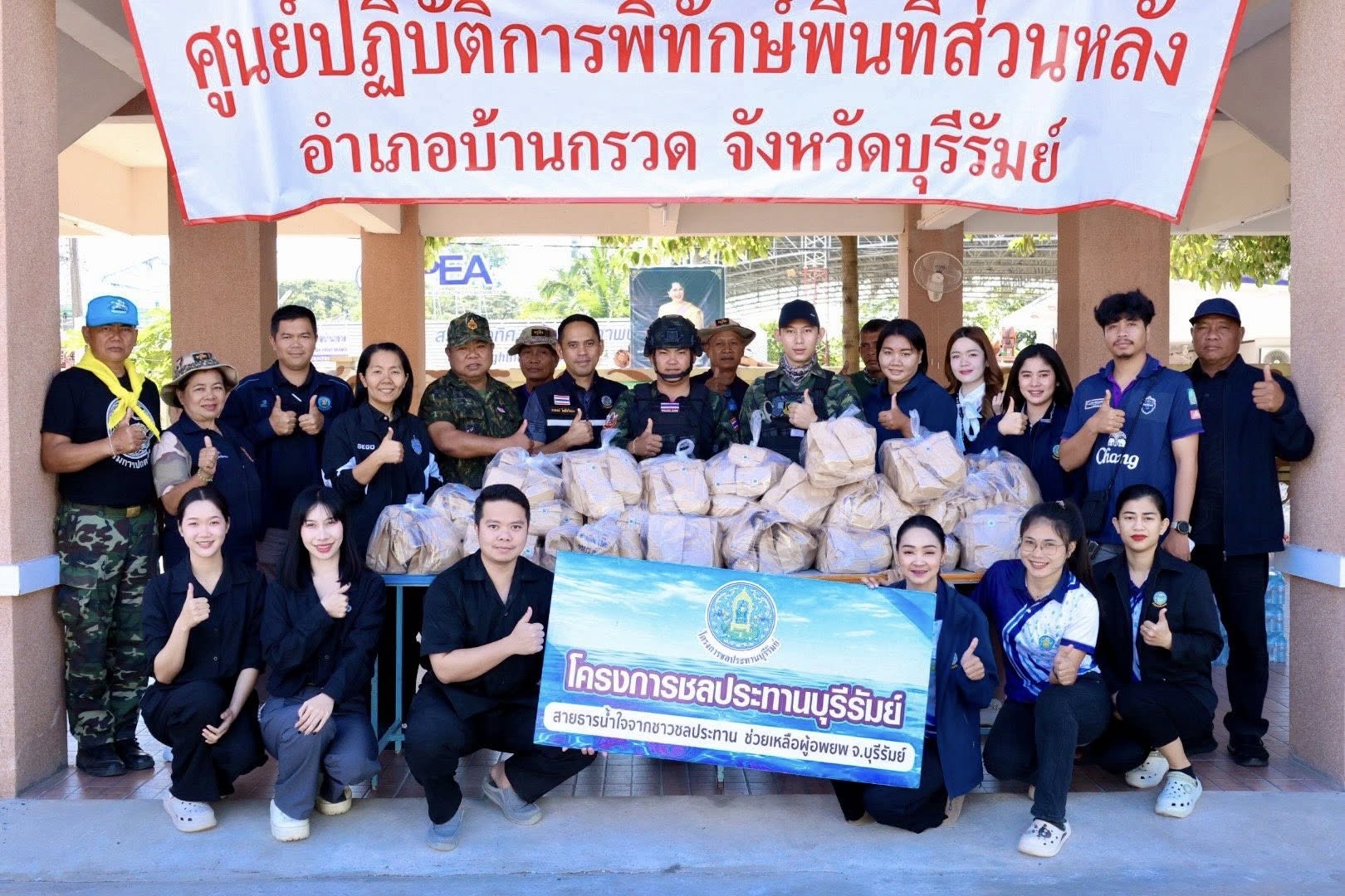 วันจันทร์ที่ 22 ธันวาคม 2568 เวลา 11.00 น. นายราเมศ พวงพรหม ผู้อำนวยการโครงการชลประทานบุรีรัมย์ มอบหมายให้ นายพรสถิต ทองศรี หัวหน้าฝ่ายช่างกล พร้อมด้วย นายสรพงษ์ โพธิ์ศรีทอง หัวหน้าฝ่ายส่งน้ำและบำรุงรักษาที่ 4 นางสาวกิตติยาภรณ์ ชื่นศรี นักจัดการงานทั่วไปปฏิบัติการ และเจ้าหน้าที่โครงการฯ จัดกิจกรรมสายธารน้ำใจจากชาวชลประทาน มอบข้าวเหนียวไก่ทอด และของใช้ เพื่อสนับสนุน สร้างขวัญกำลังใจ และขอบคุณทหารแนวหน้าที่ยืนหยัดปฏิบัติหน้าที่ที่ยิ่งใหญ่ปกป้องผืนแผ่นดินไทย เพื่อความสงบสุขของพี่น้องประชาชน โดยมี นายสงวน สิมมะวงศ์ ปลัดอำเภอบ้านกรวด ร่วมรับมอบฯ ณ อำเภอบ้านกรวด จังหวัดบุรีรัมย์